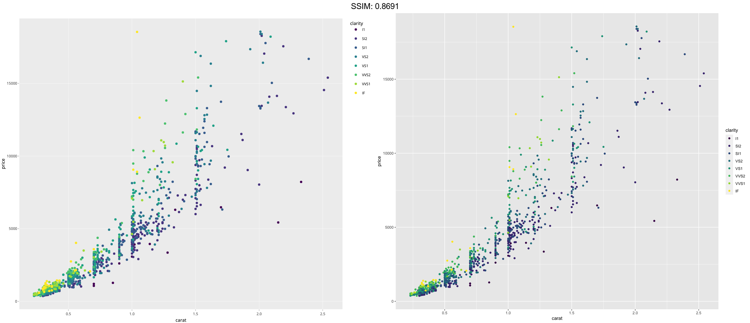 dsamp <- diamonds[sample(nrow(diamonds), 1000), ] p <- ggplot(dsamp, aes(carat, price)) + geom_point(aes(colour = clarity))