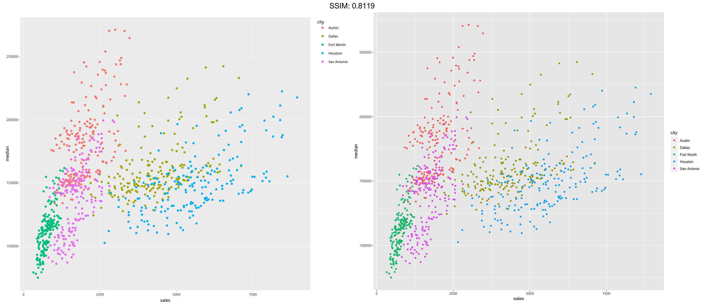 (d <- ggplot(data = txsamp, aes(x = sales, y = median)) +