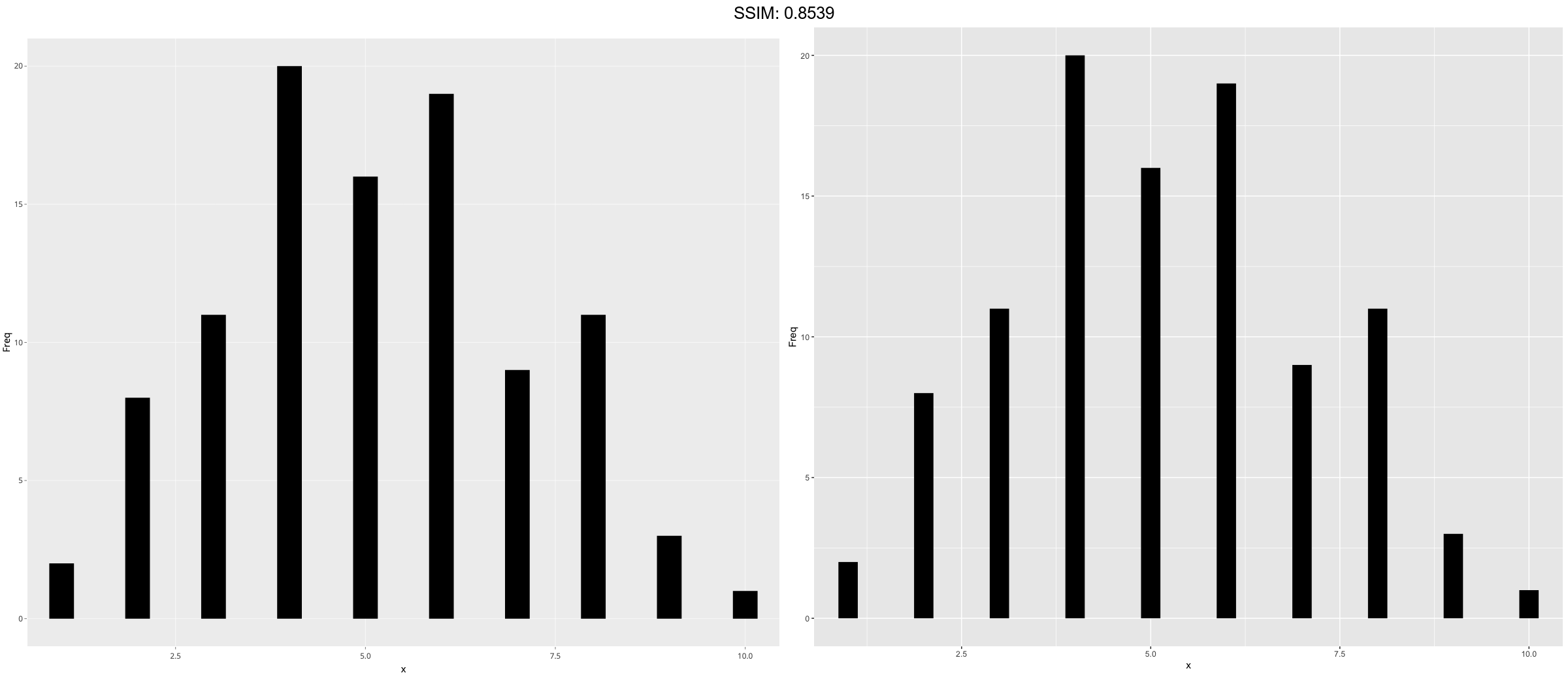 counts <- as.data.frame(table(x = rpois(100, 5))) counts$x <- as.numeric(as.character(counts$x)) p <- ggplot(counts, aes(x = x, y = Freq)) + geom_segment(aes(yend = 0, xend = x), size = 10)
